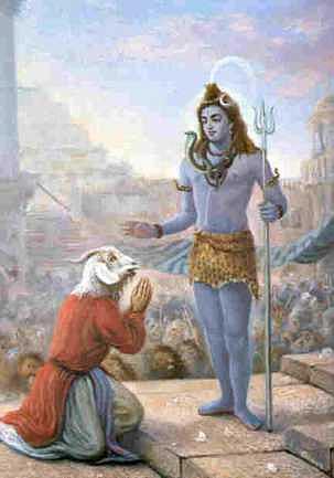 หนึ่งในลูกสาวของพระทักษะ คือ พระนางสตี อันเชื่อว่าคือพระนางอุมาลงมาเกิด ลูกสาวผู้นี้มีความพอใจในพระศิวะ แต่พระทักษะกลับไม่ชอบเพราะไม่รู้ว่าพระศิวะผู้นี้แท้จริงคือพระเป็นเจ้า ที่สุดนางสตีกลั้นใจตายเป็นเหตุให้พระศิวะพิโรธ ถึงกับ ตัดคอ พระทักษะ แล้วนำหัวแพะมาต่อให้แทนเป็นการประจาน ถึงความเขลา ของพระทักษะ ด้วยเหตุนี้ พระทักษะจึงเป็นฤๅษีหน้าแพะแต่นั้นมา