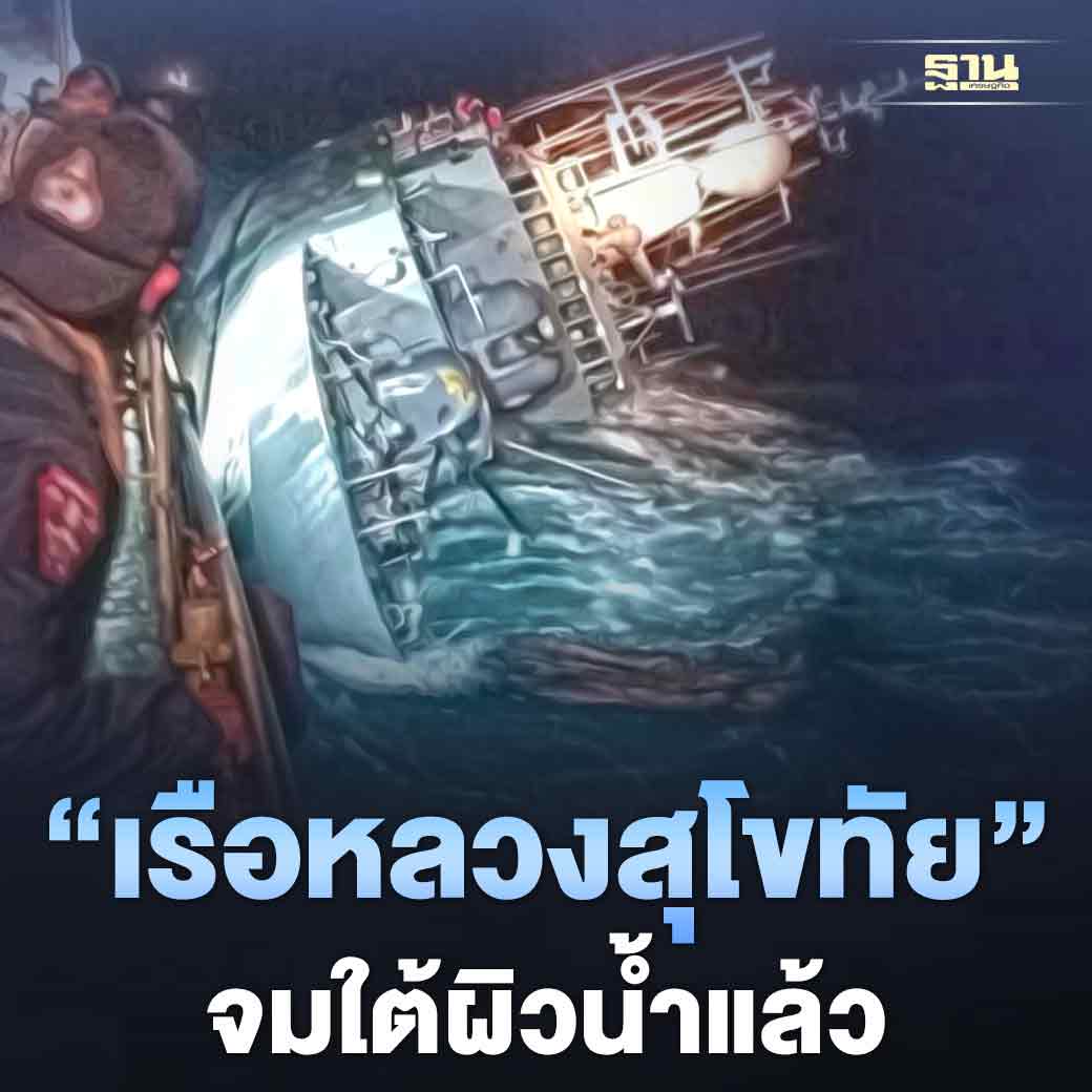 กองทัพเรือ ยืนยัน "เรือหลวงสุโขทัย" จมใต้ผิวน้ำแล้ว ช่วงก่อนเที่ยงคืน หลังถูกคลื่นซัด ส่วนลูกเรือทั้งหมดปลอดภัยแล้ว