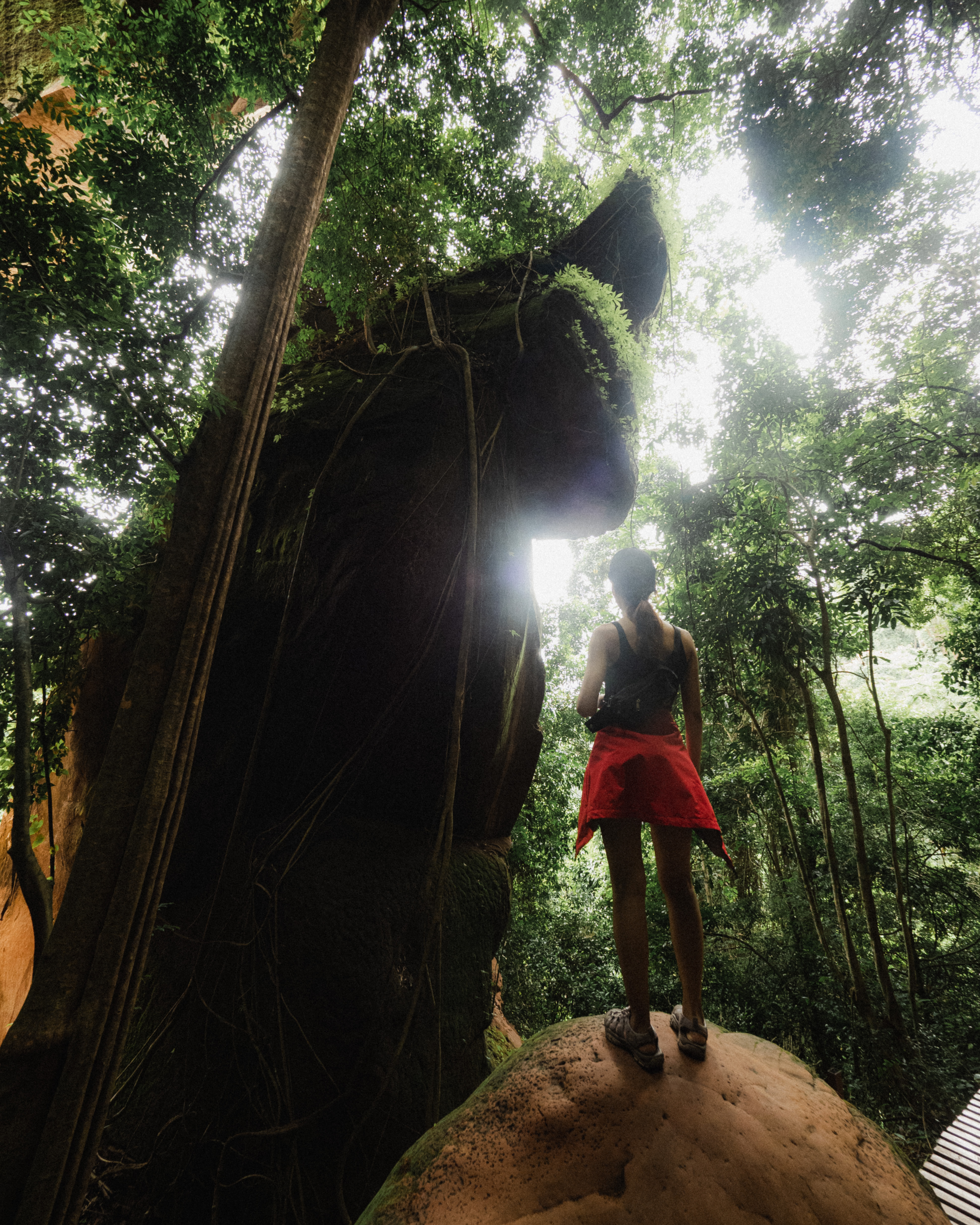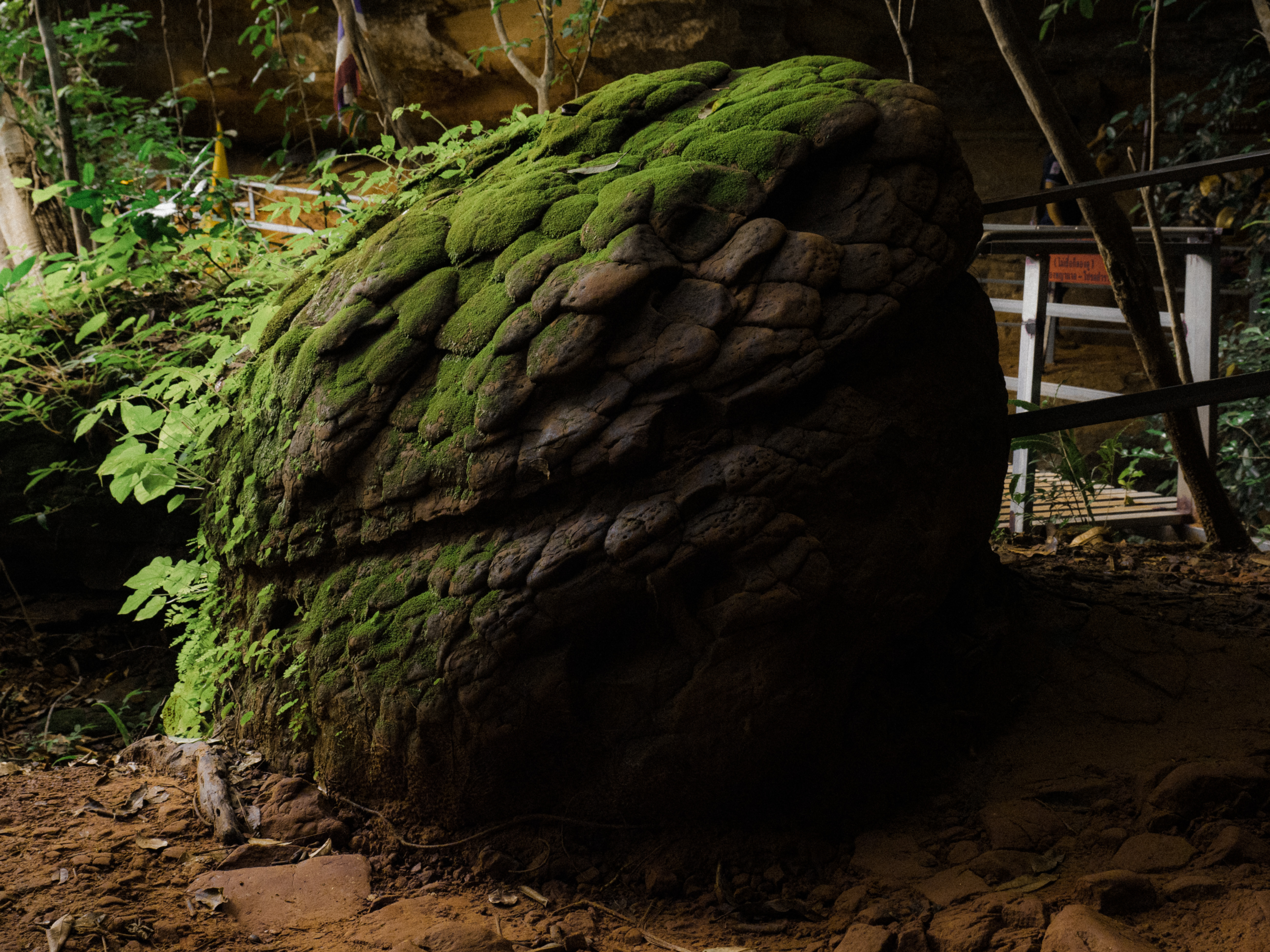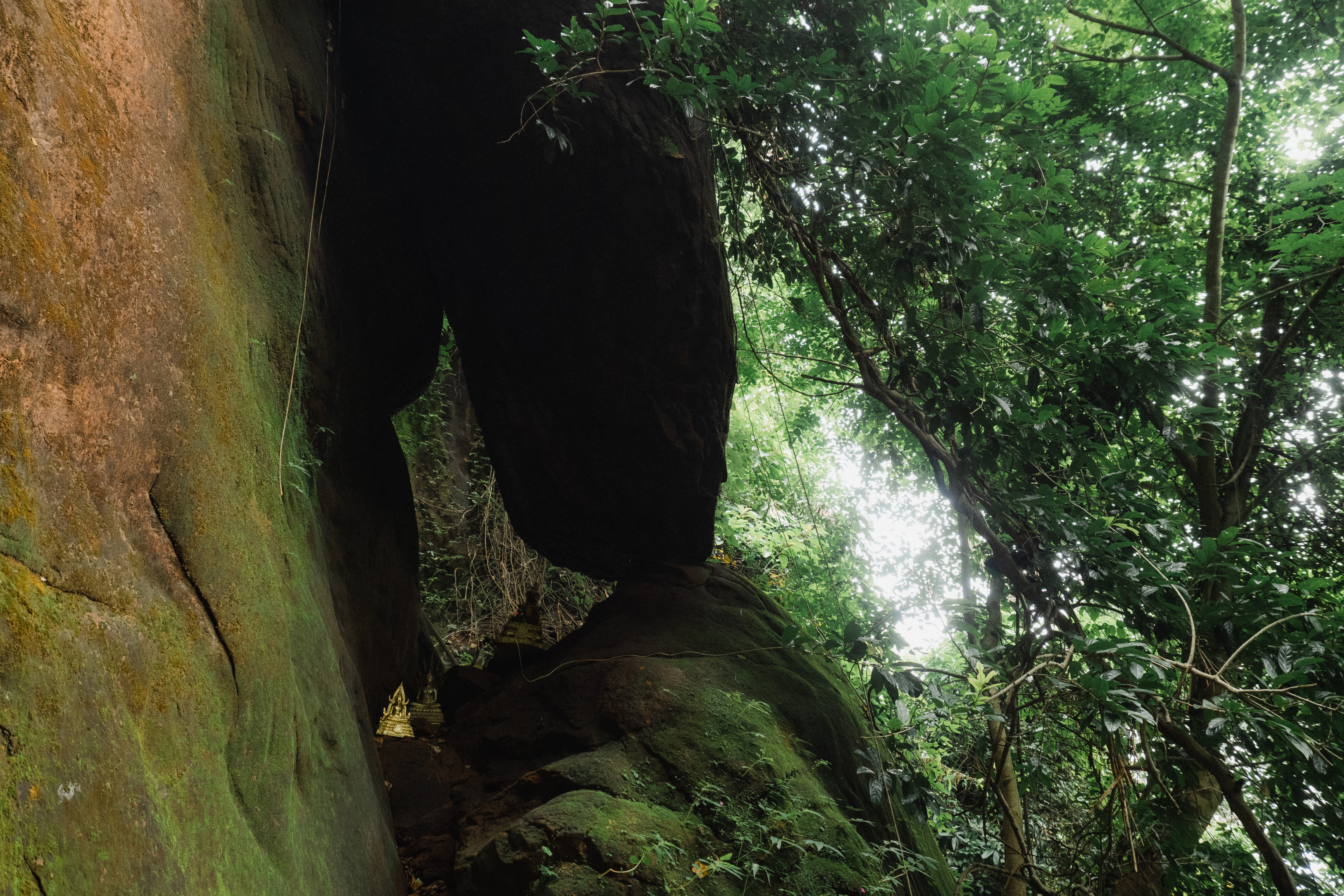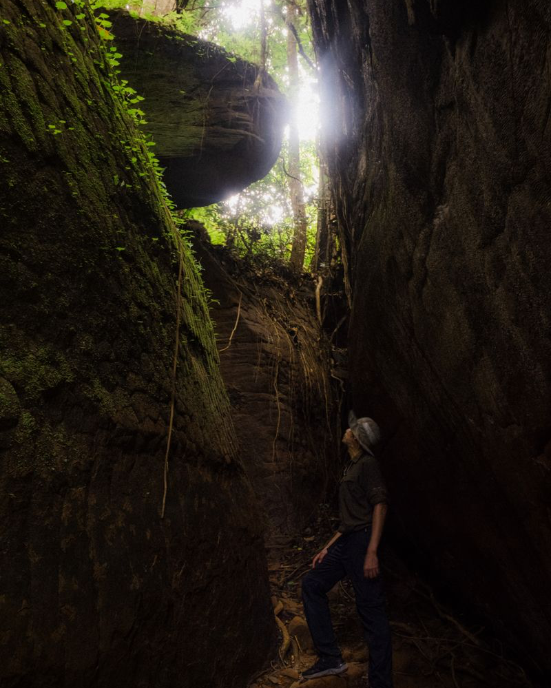 ตลอดเวลาที่อยู่ในนั้น เราจะสัมผัสได้ถึงกลิ่นอายของความเป็นดงดิบจากแมกไม้ที่ปกคลุมอยู่รอบด้าน ผสมกับรูปลักษณ์และพื้นผิวอันแสนแปลกตาของก้อนหินน้อยใหญ่ ก็ยิ่งทำให้รู้สึกเหมือนเราเดินในป่าสักผืนนึงของนิยายเพชรพระอุมา