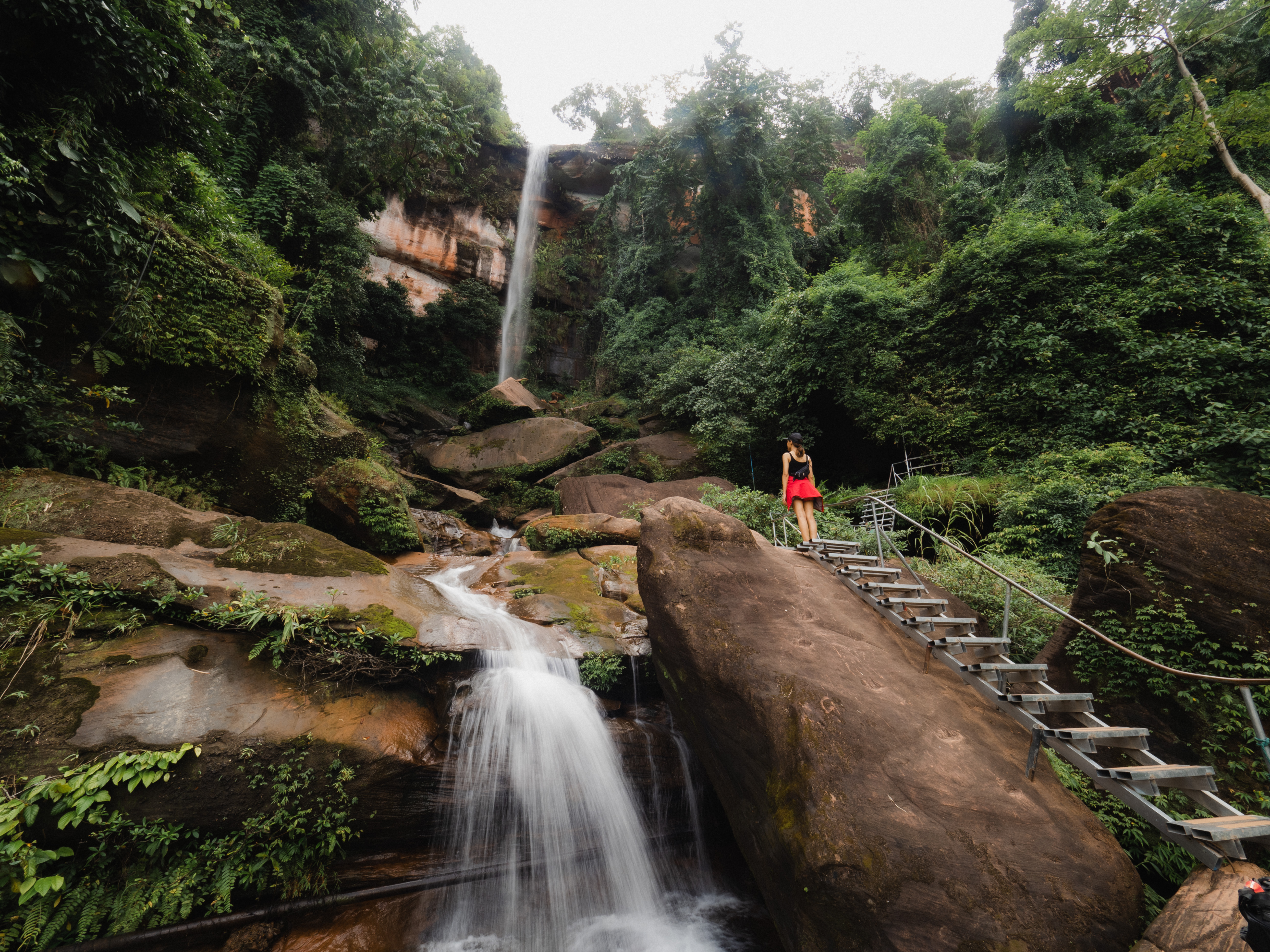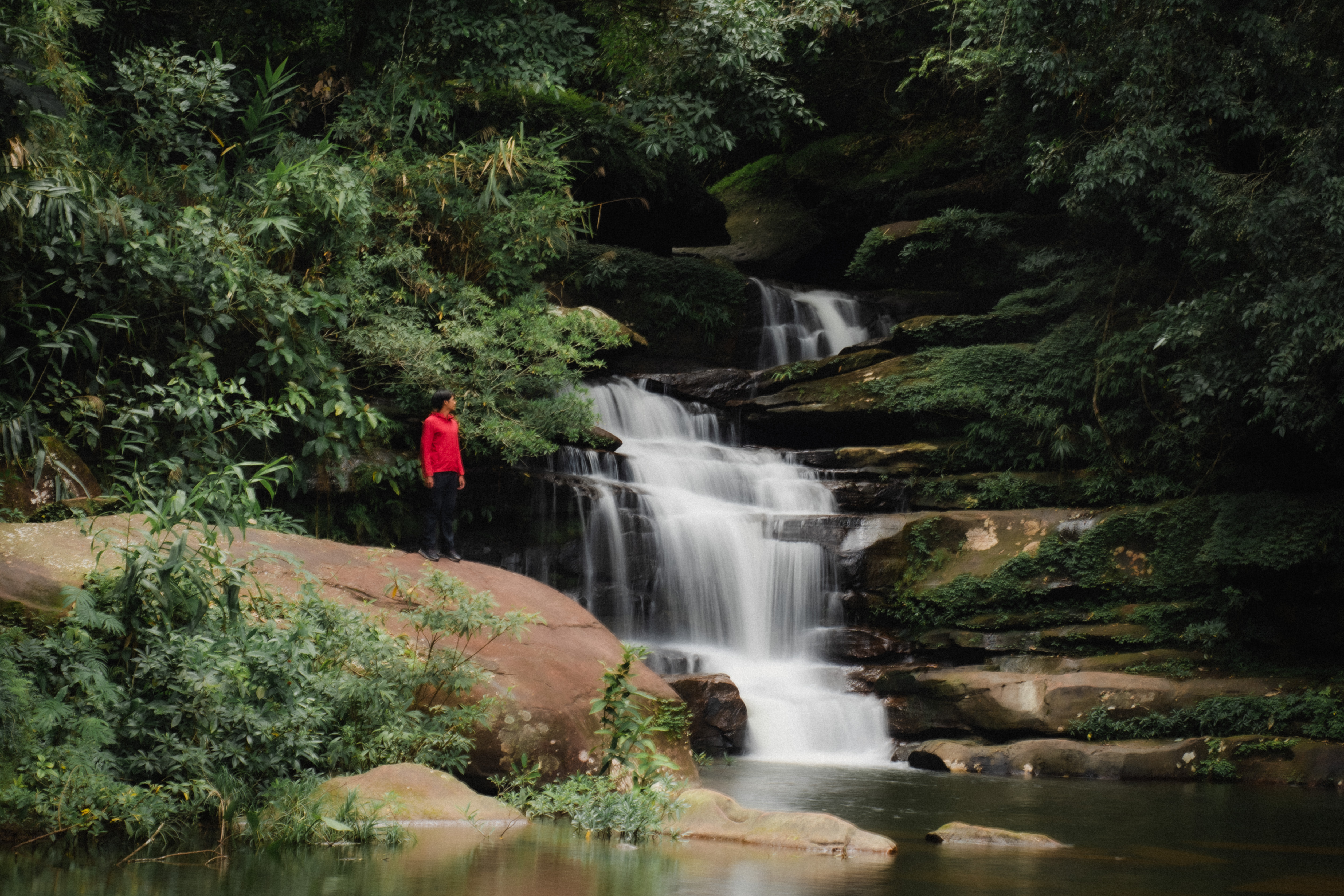 หลังจากจัดการทุกอย่างเสร็จเรียบร้อย พี่มลก็พาเราเดินเข้าไปในอุทยานแห่งชาติภูลังกา โดยพิกัดแรกที่แวะ คือน้ำตกตาดโพธิ์ ชั้นที่ 1 ซึ่งสวยใช้ได้เลย