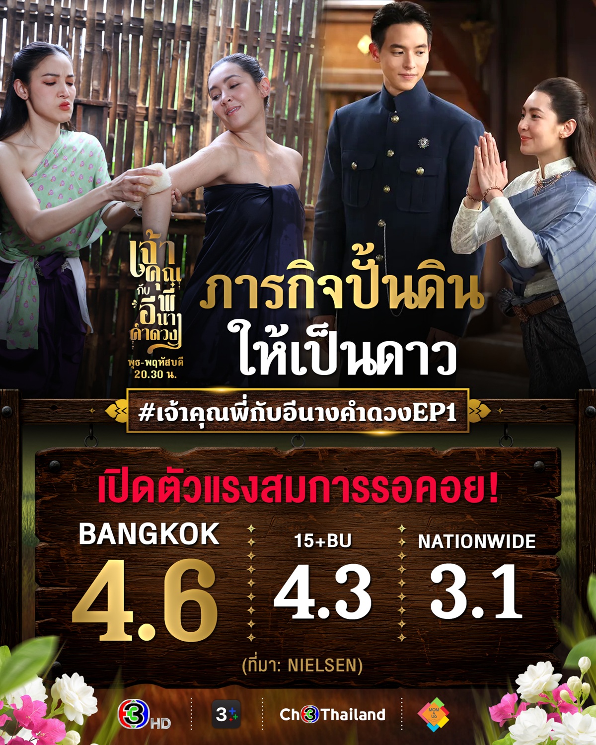 การกลับมาเจอกันอีกครั้งของ เจมส์จิ และ เบลล่าครั้งนี้ เชื่อว่าแฟนๆ เซอร์ไพรส์กับความฮาและจังหวะตลกโบ๊ะบ๊ะลงตัวที่นานๆ ที่จะได้เห็นจากนักแสดงแถวหน้าของประเทศอย่างคู่นี้ เจ้าคุณพี่กับอีนางคำดวง EP.1 ทำเรตติ้งไปที่ 3.1 เรตติ้งทั้งประเทศและ กรุงเทพ 4.6 กระแสฮือฮาทั้งโซเชียล
