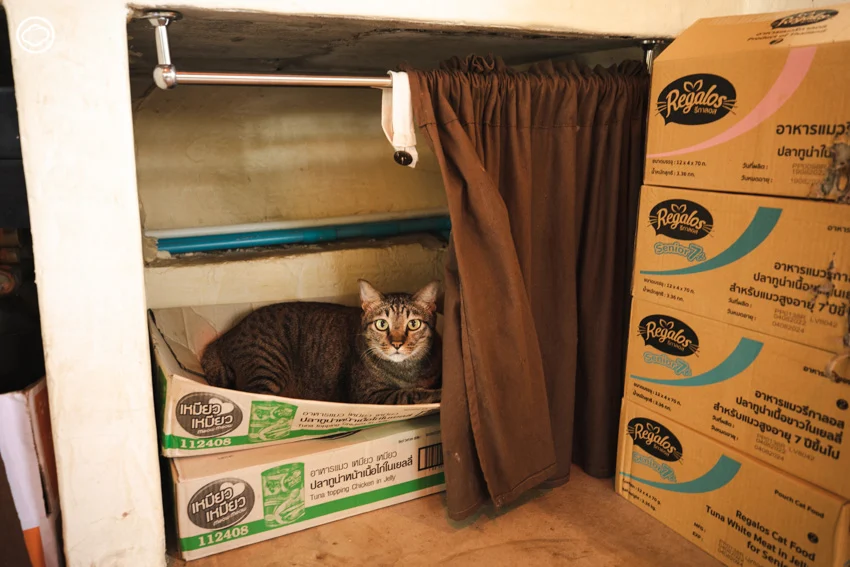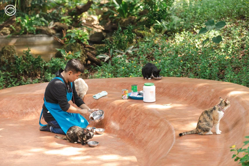 “พี่คุยกับแมวทุกตัว พวกเขารู้เรื่องนะ เราพยายามอธิบายให้เขาเข้าใจว่า เราตั้งใจทำให้เขาขนาดนี้ เวลามีคนมาก็ช่วยกันต้อนรับหน่อย เขาก็เข้าใจ” นั่นคือเหตุผลว่าทำไมแมวทั้งหมดถึงเล่นกับผู้แปลกหน้าอย่างเราราวกับเลี้ยงดูกันมาเนิ่นนาน