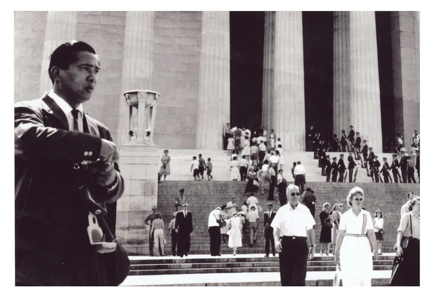 วิจิตรในวัย 36 ปีเมื่อครั้งเดินทางไปยังอนุสาวรีย์ลินคอล์น อนุสรณ์สถานของรัฐบุรุษที่ชาวอเมริกันรักและเคารพ ภาพนี้ถ่ายโดยเพื่อนนักข่าวจากสื่ออื่นๆ ที่ทำหน้าที่ติดตามเสด็จ