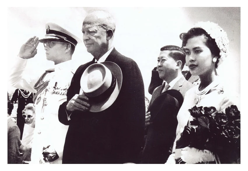 “สมเด็จพระราชินีทรงสง่างามมาก” เป็นอีกเหตุผลหนึ่งที่ทำให้เขาเลือกภาพนี้เป็นอีกหนึ่งภาพในดวงใจ ณ สนามบินแมทส์ (MATS : Military Air Transport Service Terminal) พระบาทสมเด็จพระเจ้าอยู่หัว สมเด็จพระนางเจ้าฯ พระบรมราชินีนาถ จอมพล ดไวต์ เดวิด ไอก์ ไอเซนฮาวร์ และ ดร.ถนัด คอมันตร์ อดีตรัฐมนตรีว่าการกระทรวงการต่างประเทศ ขณะกำลังยืนทำความเคารพเพลงชาติสหรัฐอเมริกา