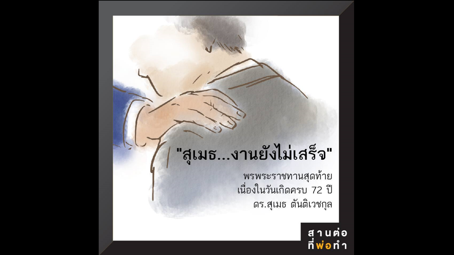 ที่มา : "สุเมธ งานยังไม่เสร็จ"