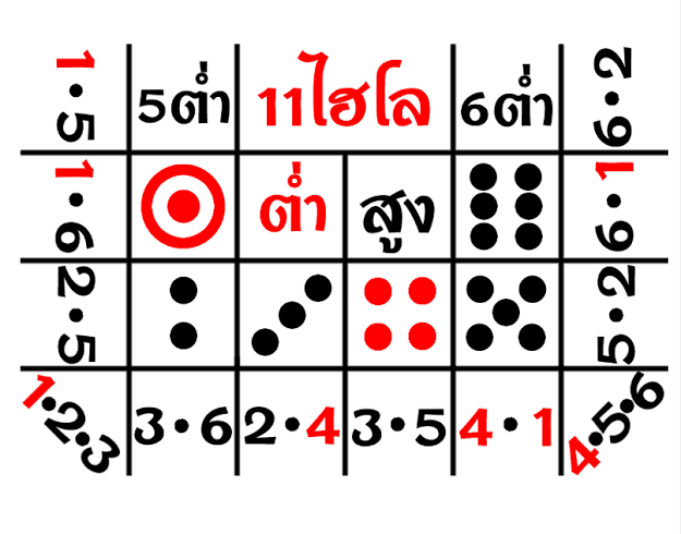 2) ใน 216 หน้า ไฮโลจะขึ้นต่ำได้ 108 หน้า หรือ 50% (ถ้าไฮโลตายต่ำ เจ้ามือเจ๊งแน่ จึงต้องพยายามฝัดหนีต่ำ)