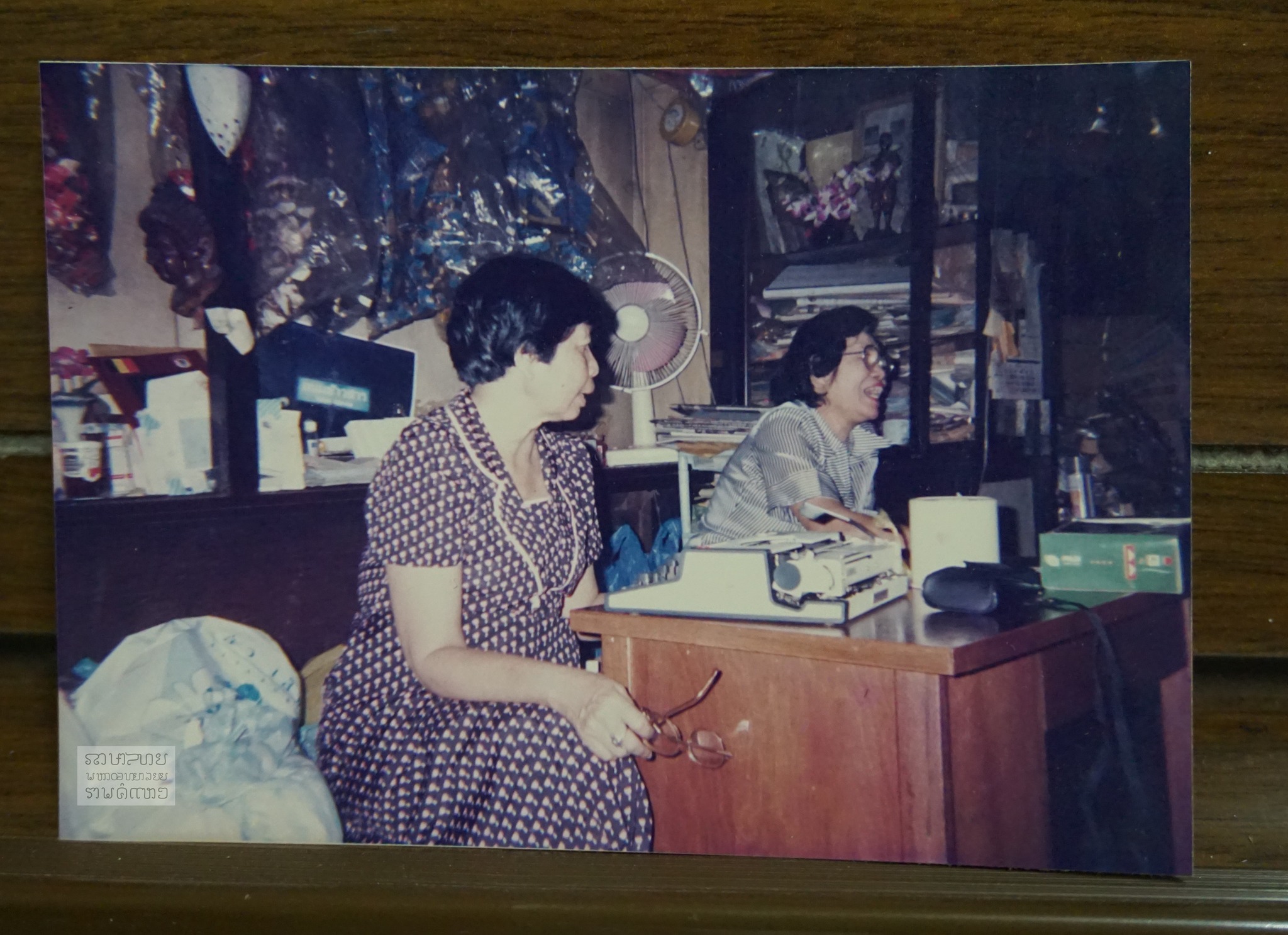 ภาพเครื่องพิมพ์ดีด และภาพคุณทิพย์วาณีกำลังพิมพ์ต้นฉบับในร้านผดุงชีพนี้ หลานของคุณทิพย์วาณีทั้งสองคือ