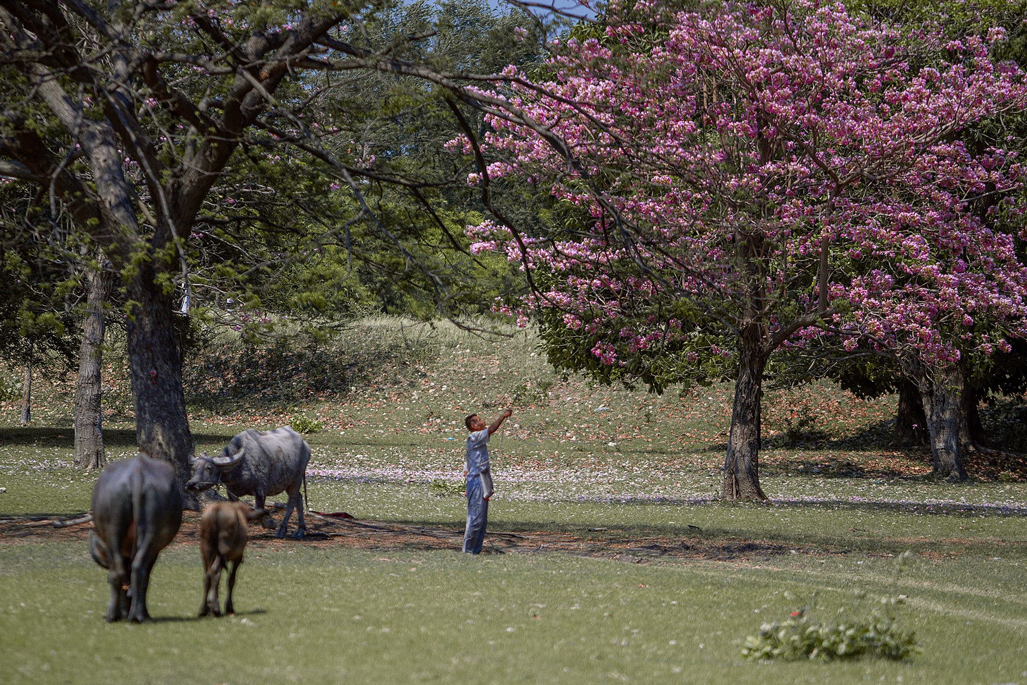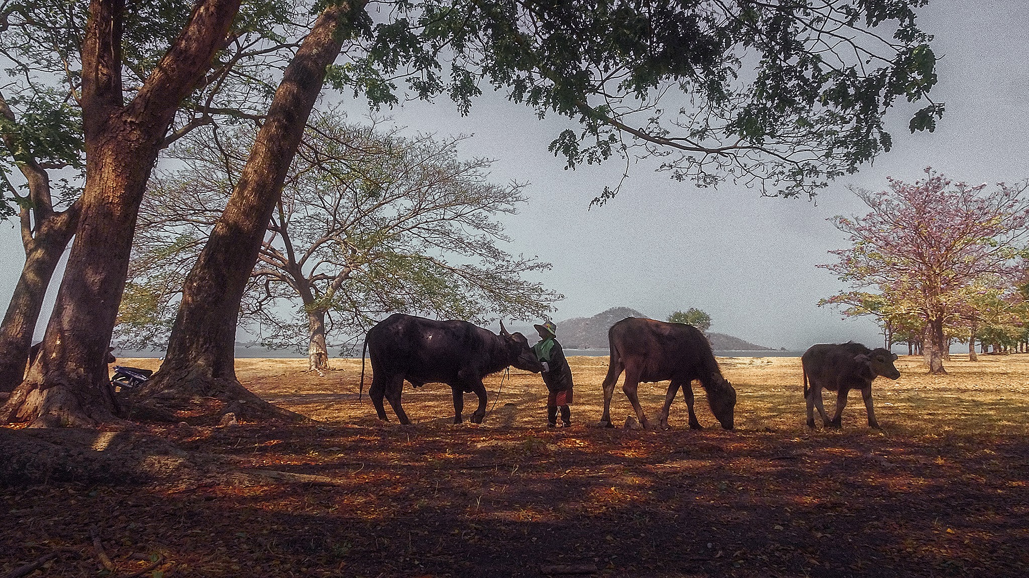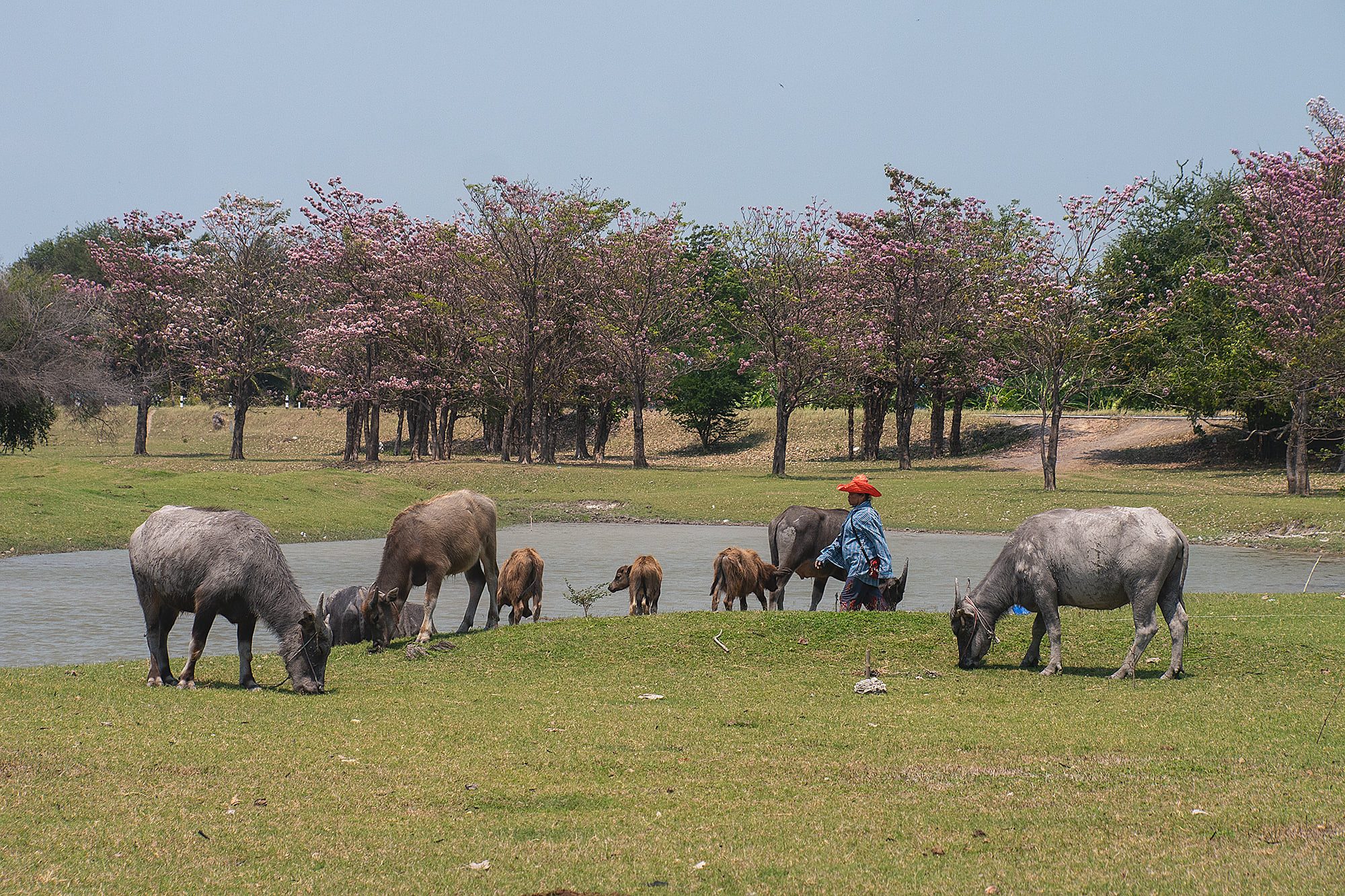 คนเลี้ยงควายริมเขื่อนป่าสัก ฯ บริเวณวัดท่าฤทธิ์ธาราม ช่วงหน้าแล้ง วัวควายและแพะจะถูกต้อนออกมาเล็มหญ้าตั้งแต่ช่วงเช้ามืด เพราะยอดหญ้าที่แห้งจะถูกพรมด้วยน้ำค้างมาทั้งคืนจนอ่อน พอให้สัตว์เคี้ยวเอื้องกินได้ พอตกช่วงเที่ยงก็จะถูกต้อนกลับเข้าบ้านเนื่องจากหญ้าเริ่มแห้งและแข็ง คนเลี้ยงบอกว่ามันไม่ชอบกิน