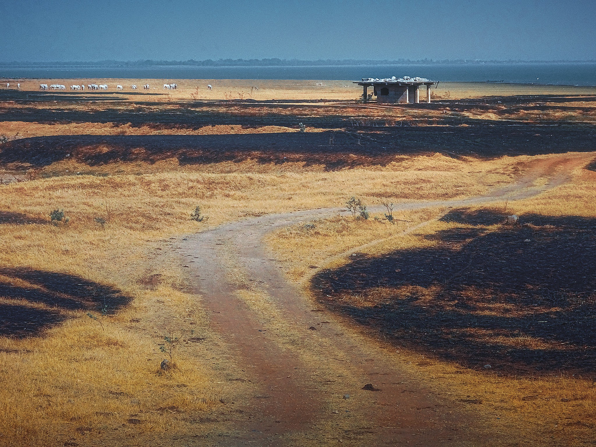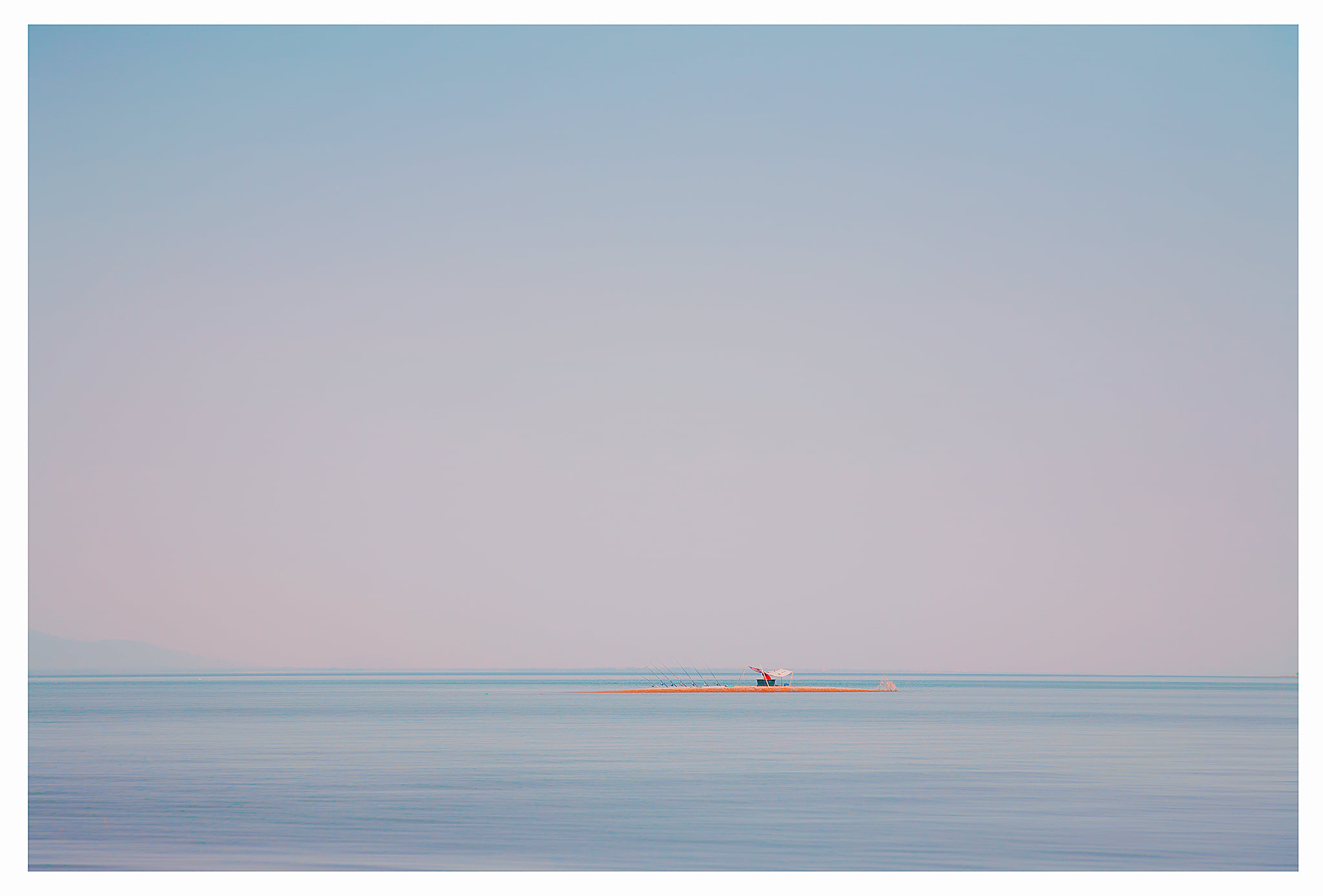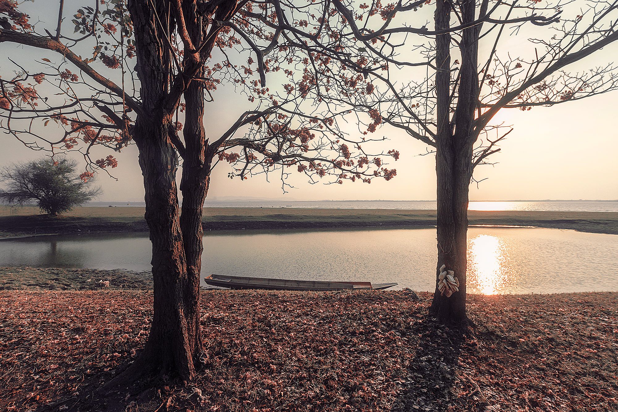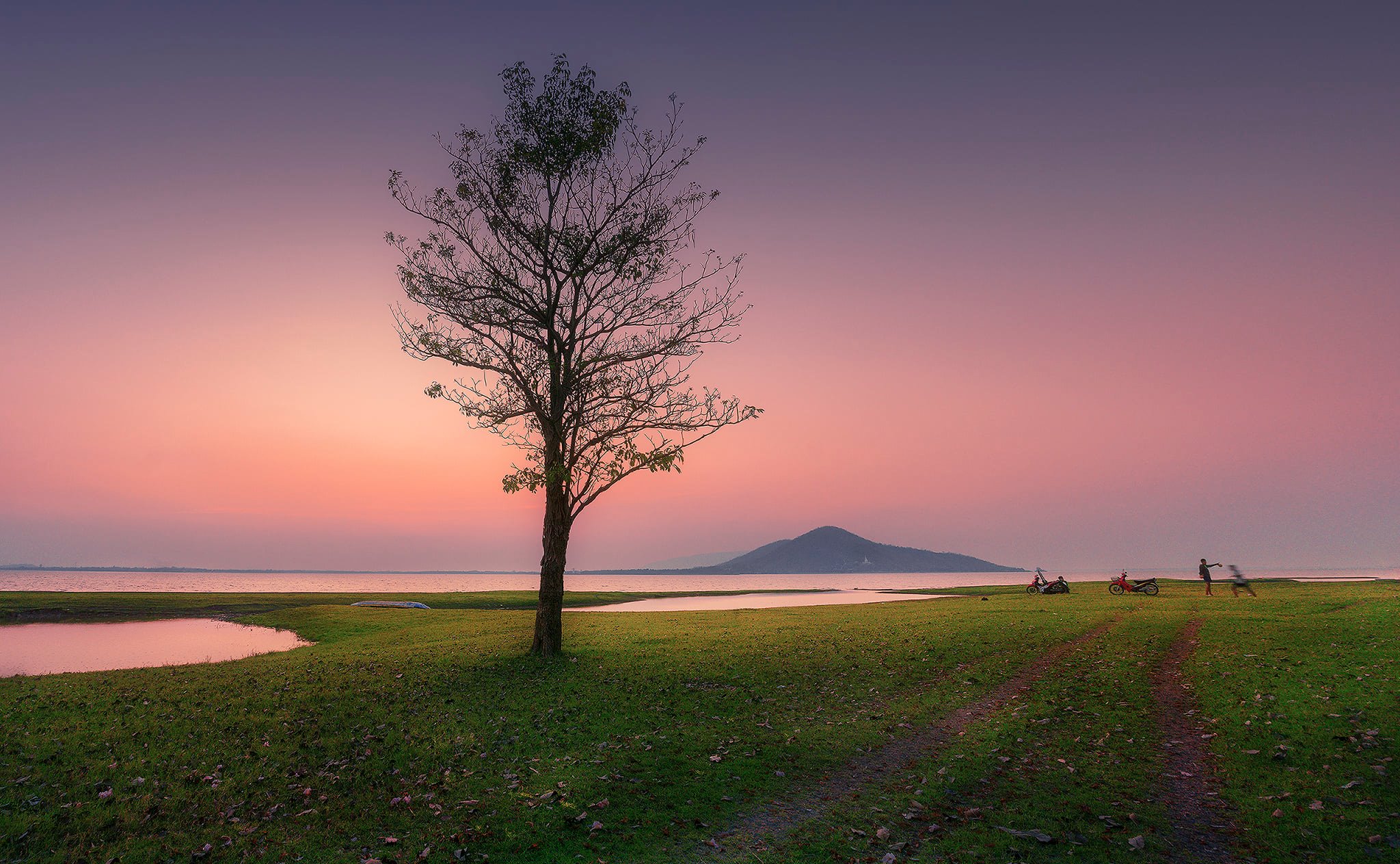 การวางเส้นขอบฟ้าไว้กลางภาพไม่ใช่เรื่องที่น่า (ไม่ใช่หน้า) ทำนัก แต่ผมแก้ด้วย วางสิ่งที่น่าสนใจไว้ข้างหน้าเลยเพื่อดึงความสนใจแทน คงพอช่วยได้บ้าง