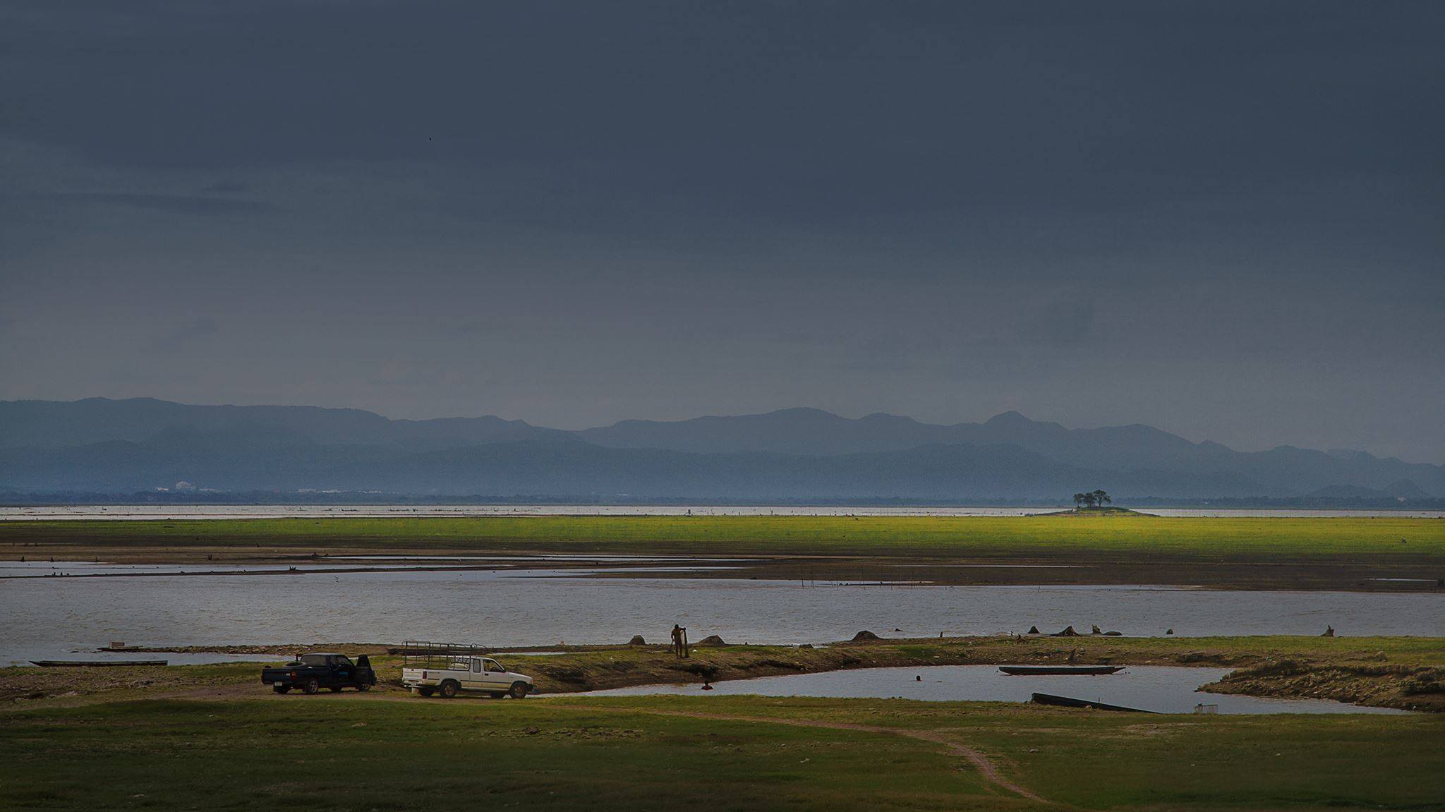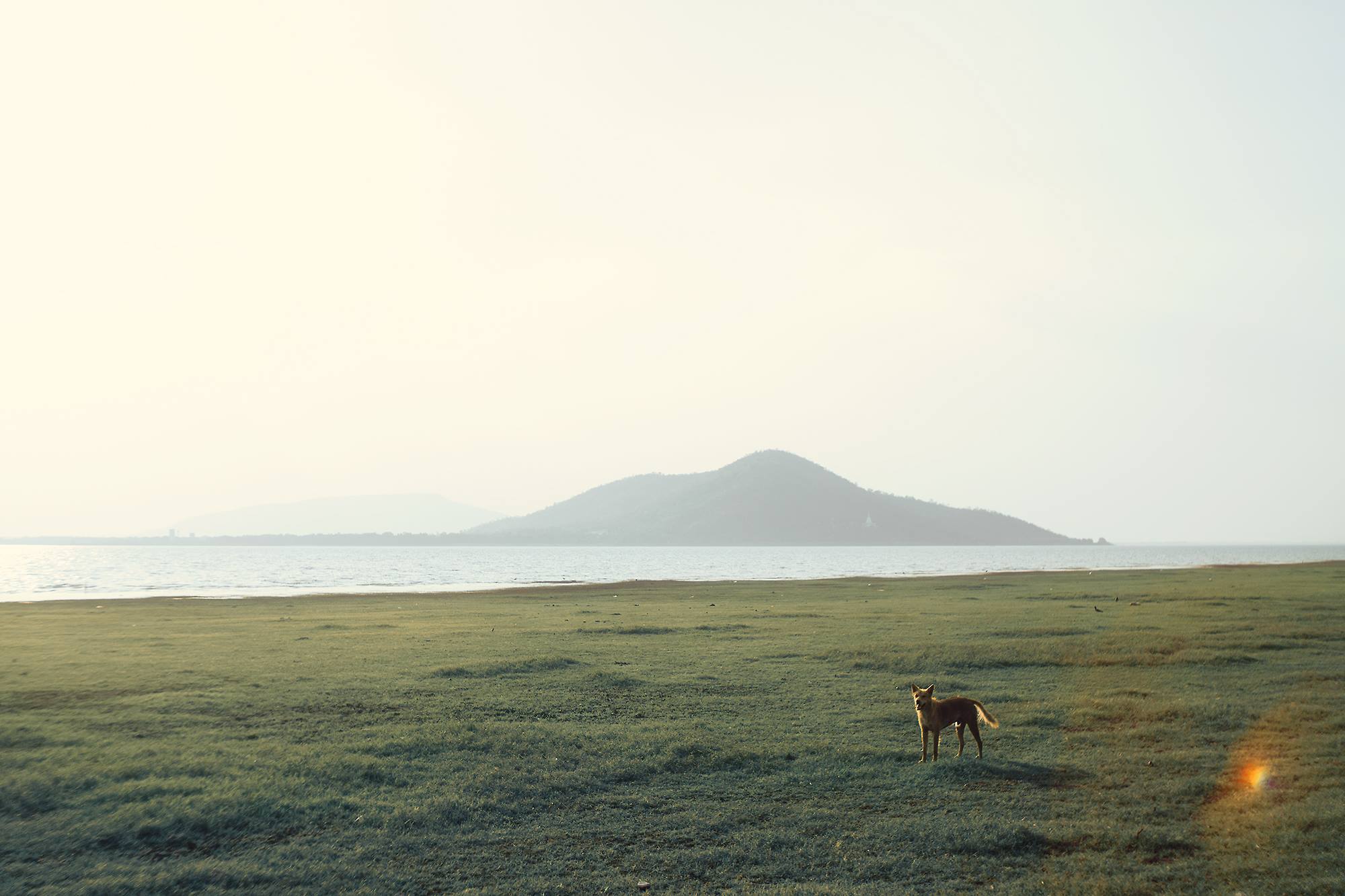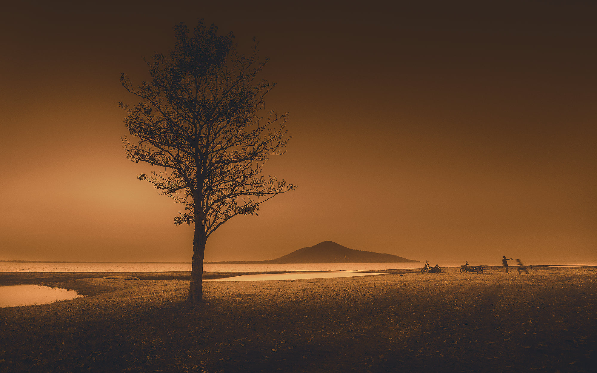 การวางเส้นขอบฟ้าไว้กลางภาพไม่ใช่เรื่องที่น่า (ไม่ใช่หน้า) ทำนัก แต่ผมแก้ด้วย วางสิ่งที่น่าสนใจไว้ข้างหน้าเลยเพื่อดึงความสนใจแทน คงพอช่วยได้บ้าง