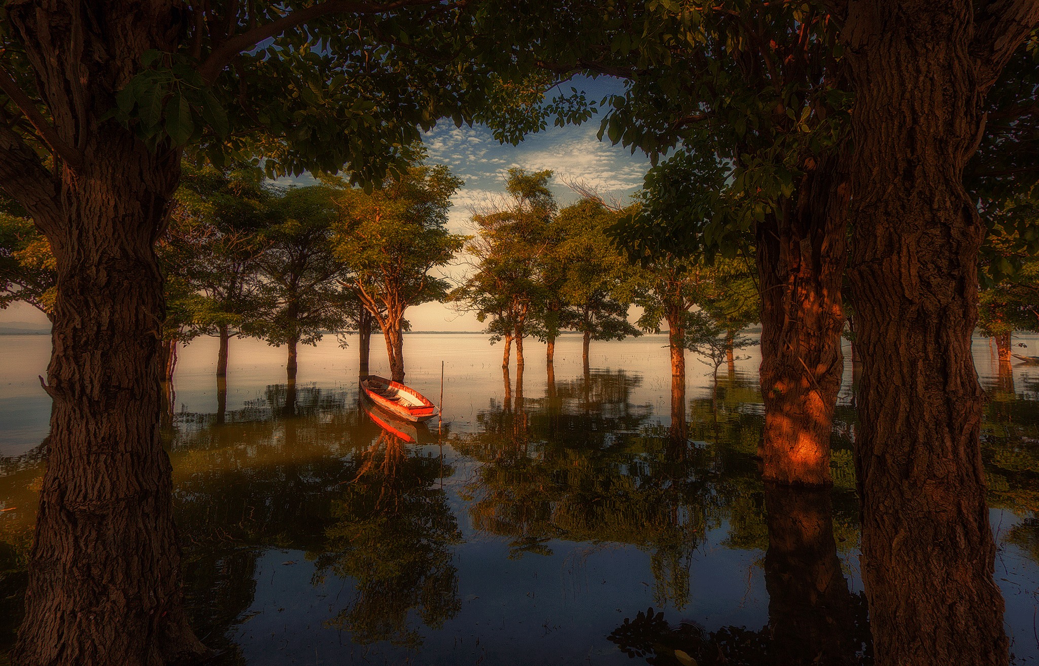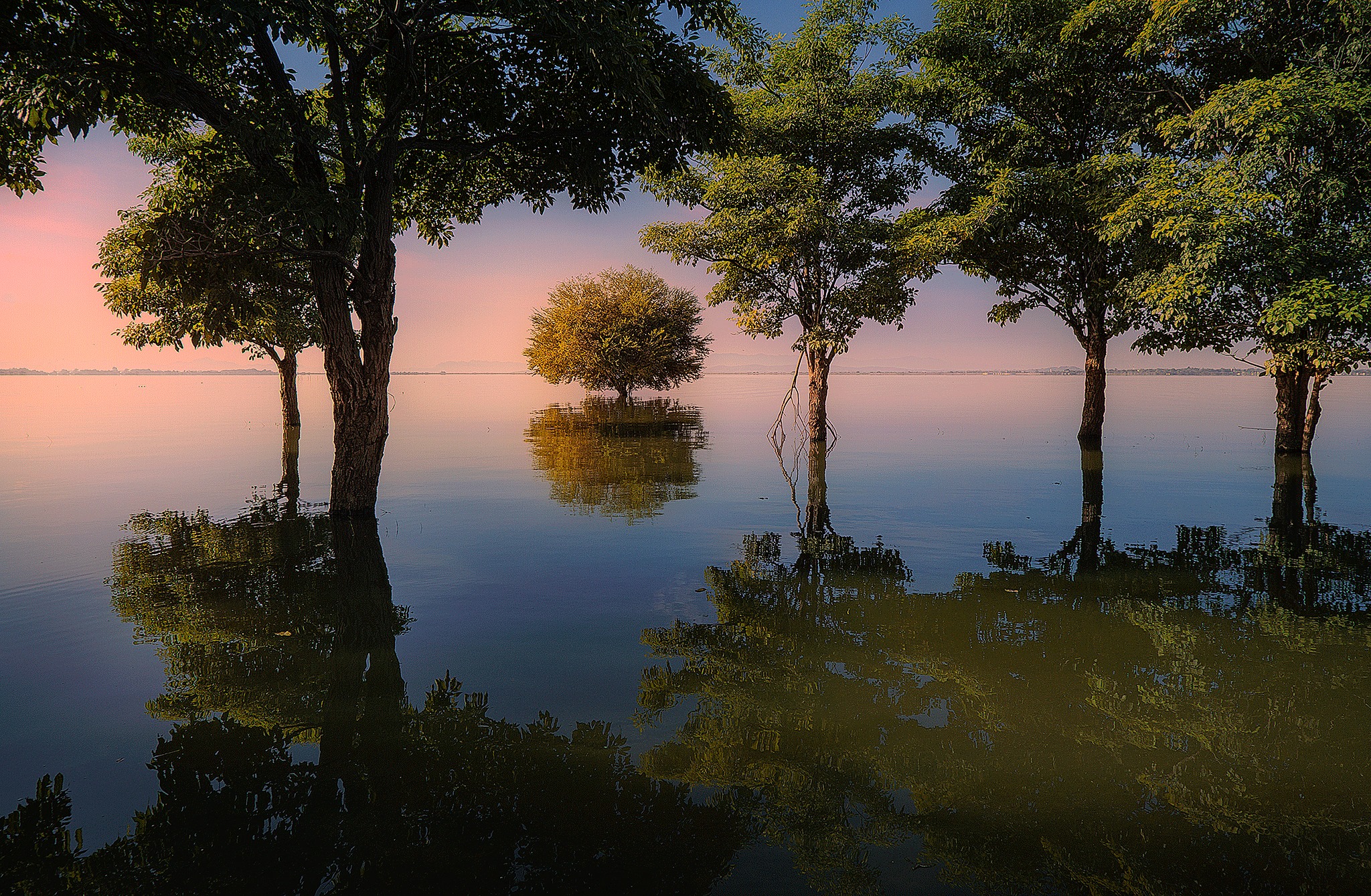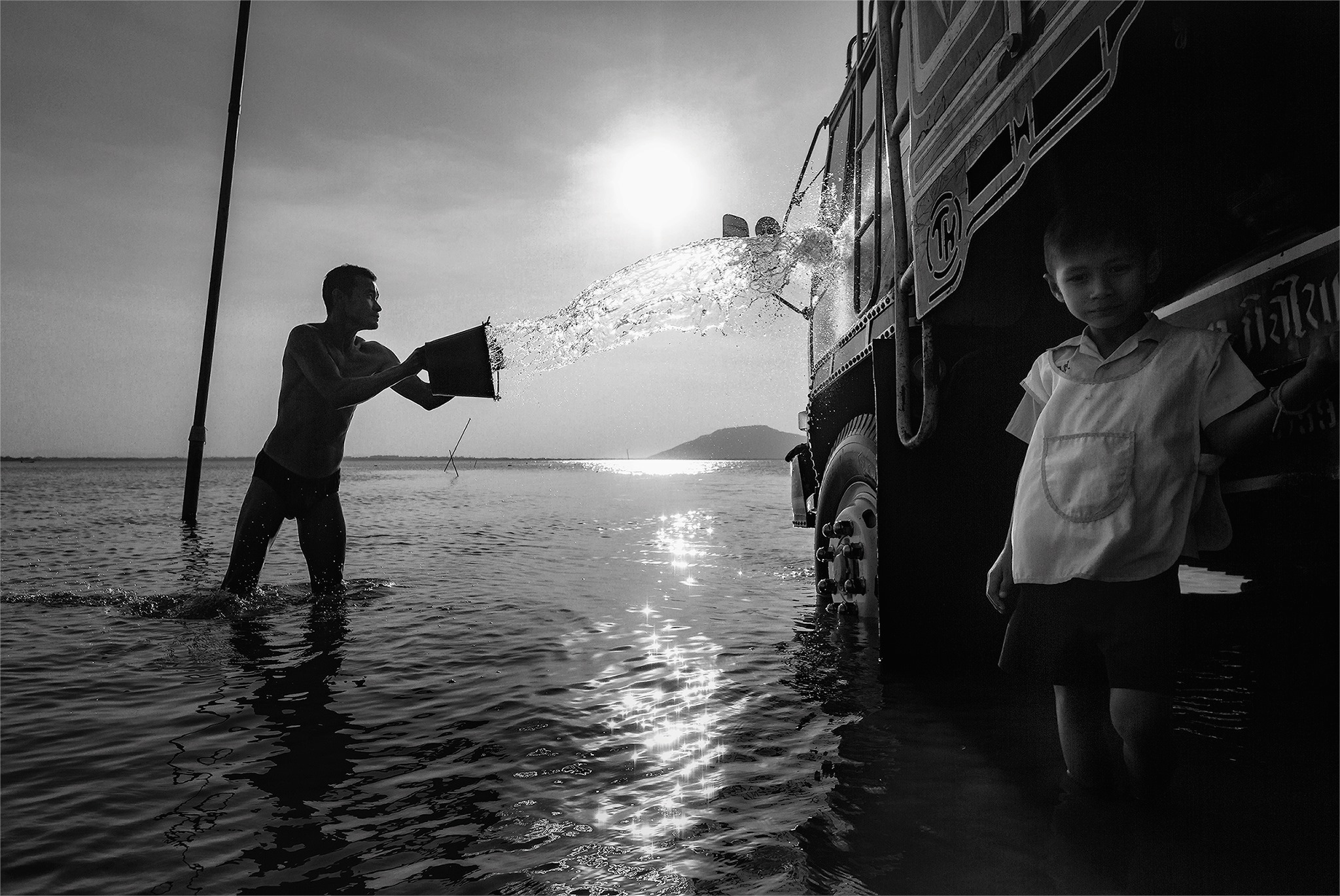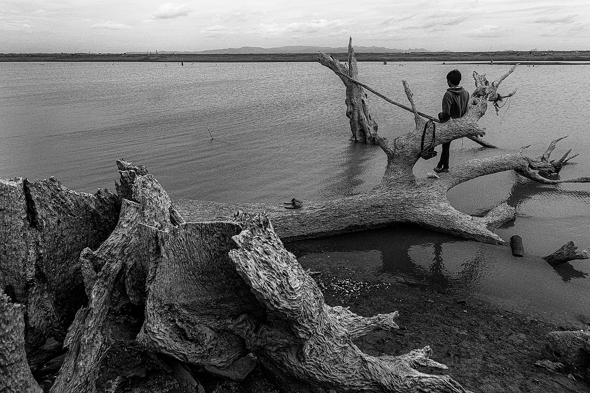 การวางเส้นขอบฟ้าไว้กลางภาพไม่ใช่เรื่องที่น่า (ไม่ใช่หน้า) ทำนัก แต่ผมแก้ด้วย วางสิ่งที่น่าสนใจไว้ข้างหน้าเลยเพื่อดึงความสนใจแทน คงพอช่วยได้บ้าง