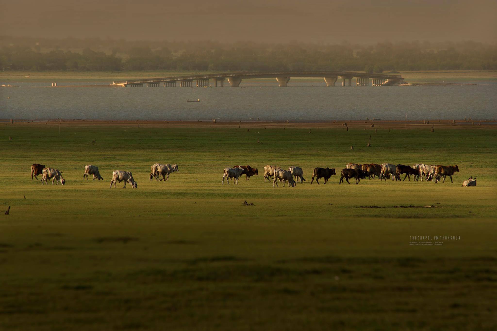นอกจากฝูงวัวกำลังและเล็มหญ้าอย่างมีความสุขแล้ว ต้องสดุดตากับ สะพานยาว ที่ทอดลงสู่สายน้ำ นั้น เห็นแล้วสงสัยว่าเป็น สะพานเก่าในอดีต ก่อนจะจมน้ำในอ่างของเขื่อนป่าสักฯ ใช่ไหมครับ (ใกล้ชุมชนวัดกัณฑาพฤกษ์)