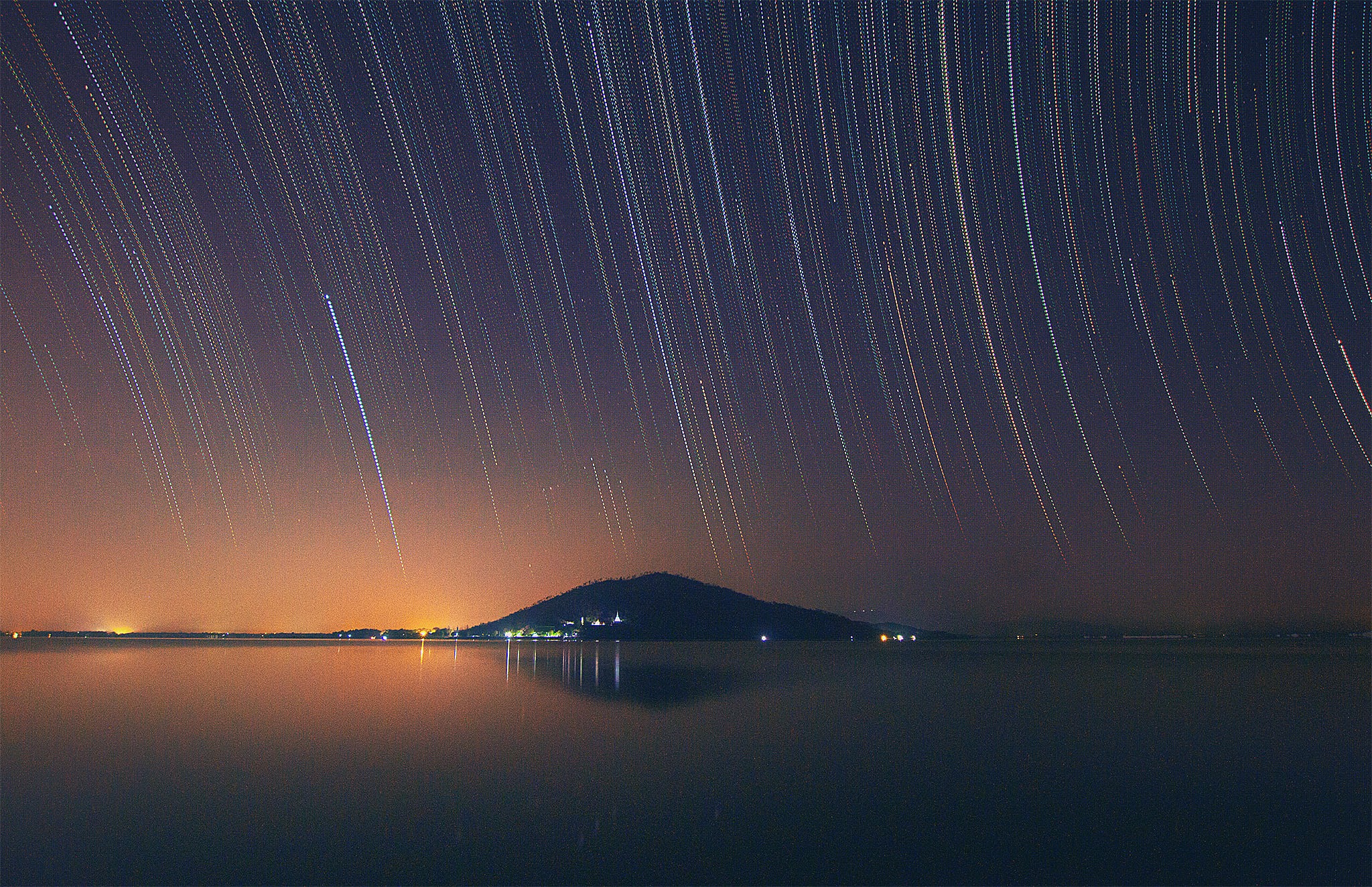เป็นการหมุนดาวที่อยู่ทางทิศตะวันตก ลักษณะเส้นดาวจะเป็นแบบวงกลมสองวงมาชนกันแบบที่เห็น คือวงของทางทิศเหนือกับวงของทางทิศใต้ มันไม่ใช่การเคลื่อนที่ของดวงดาวบนฟ้า แต่มันคือการหมุนรอบตัวเองของโลก
