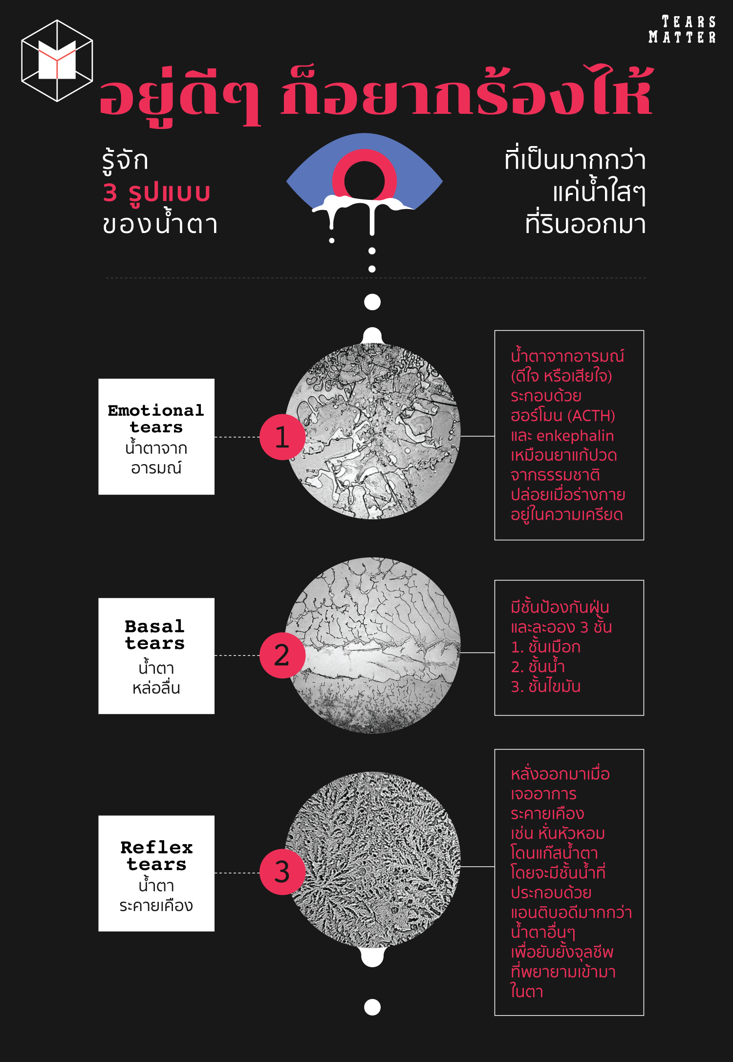 ~น้ำตา...ไม่ได้ไหลออกมา เพียงแค่เวลาที่เรารู้สึกเสียใจ ดีใจ แล้ว "ร้องไห้" ออกมาเท่านั้น!!! ยังมีน้ำตาชนิดอื่นๆอีก ที่ดวงตาของเราสร้างขึ้นค่ะ✨